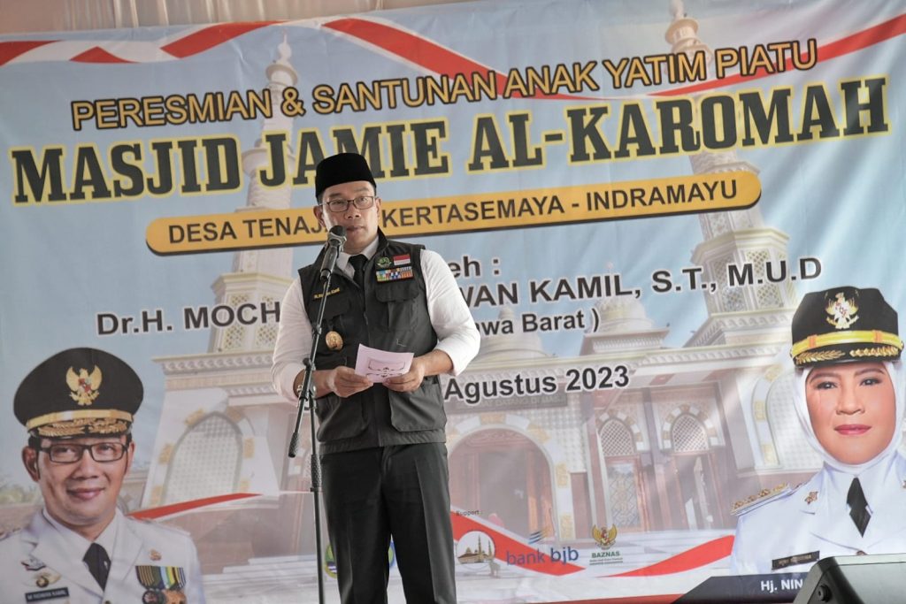 Demikian dikatakan Ridwan Kamil saat meresmikan Masjid Jami Al Karomah di Desa Tenajar, Kecamatan Kertasemaya, Kabupaten Indramayu, Selasa (22/8/2023).
