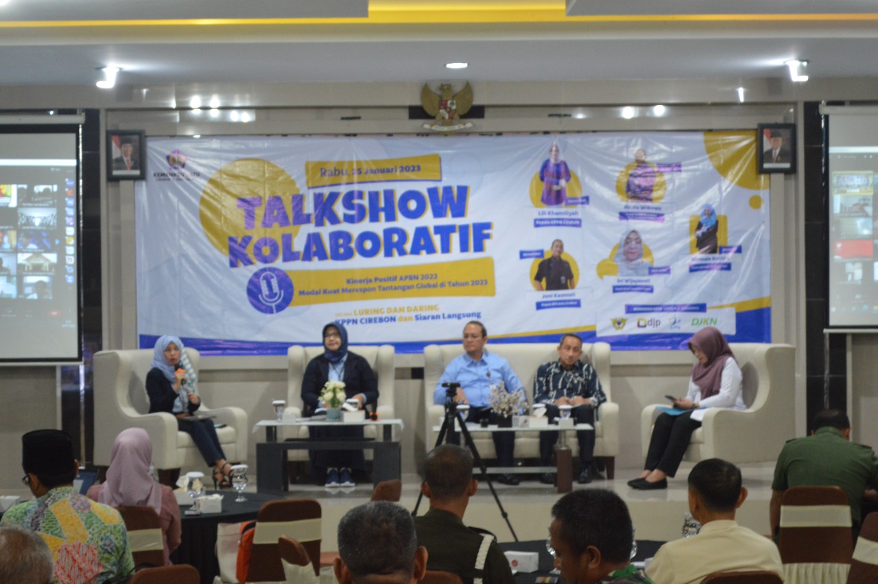 CIREBON, (cirebonbagus.id).- KPPN Cirebon menggelar talkshow kolaboratif dengan tema kinerja positif APBN 2022 modal kuat merespon tantangan global di tahun 2023, Rabu (25/1/2023).