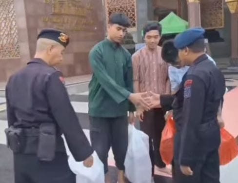 KOTA CIREBON.- Dalam semangat berbagi di bulan suci Ramadan, anggota Kompi 2 Batalyon C Pelopor Satbrimob Polda Jabar melaksanakan kegiatan sosial dengan menyerahkan paket takjil di Masjid Raya At-Taqwa, Kota Cirebon, Kamis (13/3/2025).