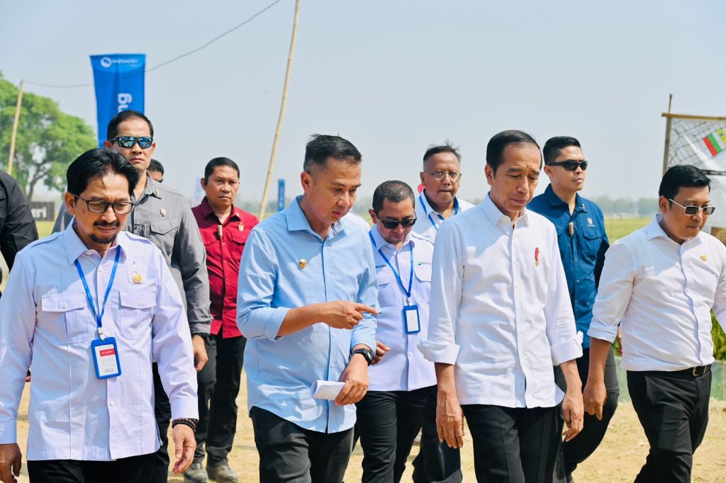 KABUPATEN SUBANG, (cirebonbagus.id).- Penjabat Gubernur Jawa Barat Bey Machmudin mendampingi Presiden RI Joko Widodo meninjau panen raya di Desa Ciasem Girang, Kabupaten Subang, Minggu (8/10/2023).