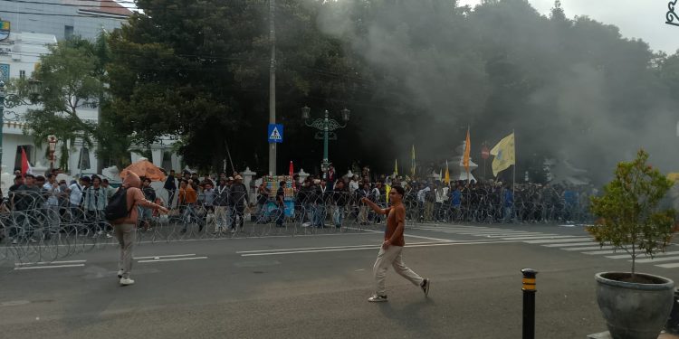 Hingga berita ini diturunkan, mahasiswa masih bertahan di lokasi aksi untuk menyampaikan aspirasi mereka. (Wandi/Arif)