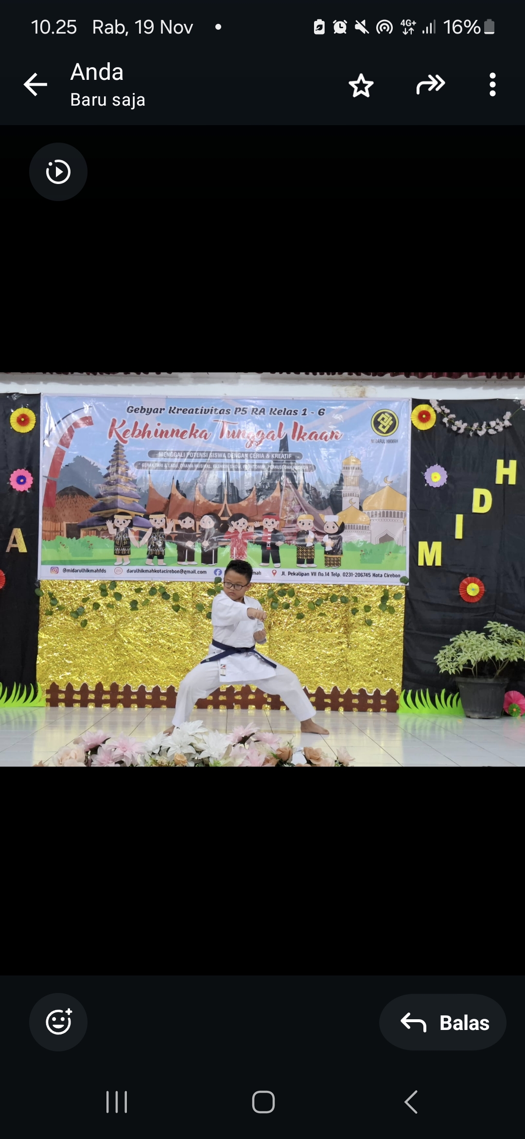 Penampilan kedua menghadirkan atlet karate “kata” 5 dan pilihan oleh Muhammad Reyhan Arif Rafasya. Reyhan yang baru saja meraih juara 3 Popkota Cirebon 2025 tampil dengan meyakinkan dengan jurus-jurus yang cukup baik sehingga menghibur orangtua, tamu undangan dan siswa.