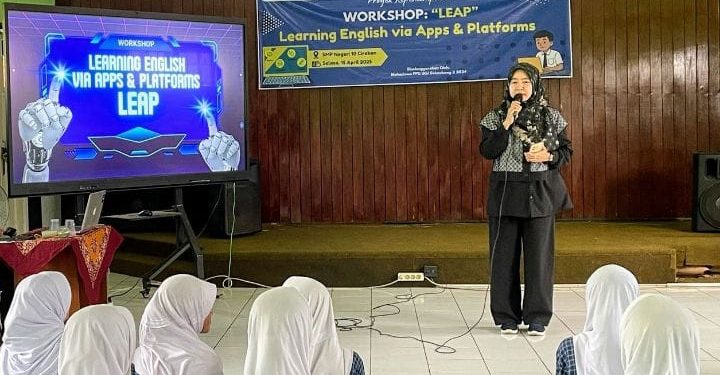 KOTA CIREBON.- Dosen dan mahasiswa Program Pendidikan Profesi Guru (PPG) Calon Guru Gelombang 2 Semester 2 Tahun 2024 Universitas Swadaya Gunung Jati (UGJ) Cirebon menyelenggarakan workshop bertajuk “LEAP: Learning English via Apps and Platforms” pada Selasa, 15 April 2025, bertempat di ruang serbaguna SMP Negeri 10 Cirebon.