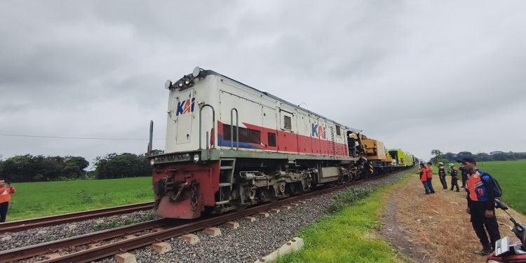 Muhibbuddin Manager Humas KAI Daop 3 Cirebon menyampaikan evakuasi dilakukan oleh para petugas KAI dengan menggunakan Railway Crane yang didatangkan dari Dipo Lokomotif Cirebon.