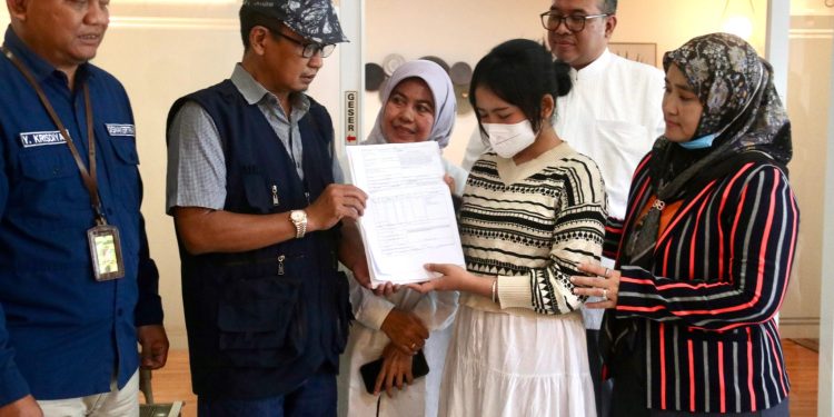 Penyerahan dokumen kematian dilakukan secara resmi oleh Kepala Unit Layanan Terpadu Satu Atap (LTSA) PMI Dinas Tenaga Kerja dan Transmigrasi Provinsi Jawa Barat kepada Pemerintah Daerah Kota Cirebon, yang diwakili oleh Dinas Tenaga Kerja. Selanjutnya, dokumen tersebut diserahkan kepada putri almarhumah, Nesya Puji Lestari, di tengah suasana haru dan penuh penghormatan.