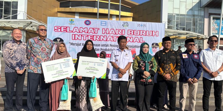 CIREBON.- Hari Buruh Internasional 2025 di Kota Cirebon diperingati para pekerja dan pelaku usaha bersama Pemerintah Kota Cirebon di Grage City Mall, Kamis (1/5).