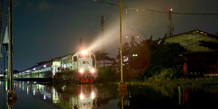 SEMARANG.- Perjalanan kereta api berangsur normal setelah banjir surut pada lokasi di Km 2+300 s/d 4+500 petak jalan Semarang Tawang – Alastua.