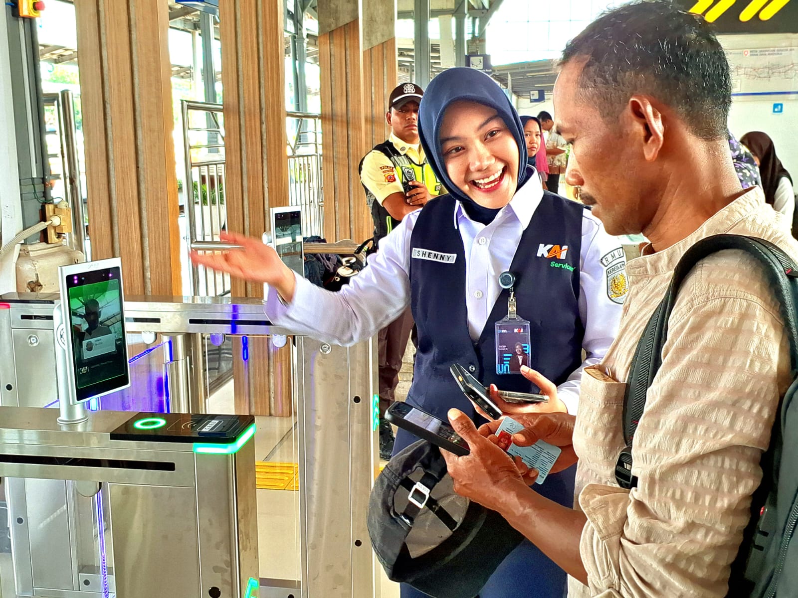 Dengan teknologi ini, penumpang menjadi lebih mudah dalam proses boarding, tak lagi harus menunjukkan tiket kertas dan KTP, cukup dengan melakukan pemindaian wajah, penumpang bisa melewati gate dan memasuki peron stasiun, tanpa harus diperiksa oleh petugas boarding.