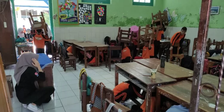 “Siswa siswi sangat antusias ikut simulasi penyelamatan dari bencana gempa bumi. Mereka juga diajarkan tidak panik saat terjadi bencana gempa bumi,” ujar Siti.