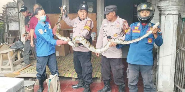 “Kami langsung bergegas begitu menerima laporan ada ular besar di dalam rumah,”tutur Kapolsek Gebang, AKP Wawan Hermawan.
