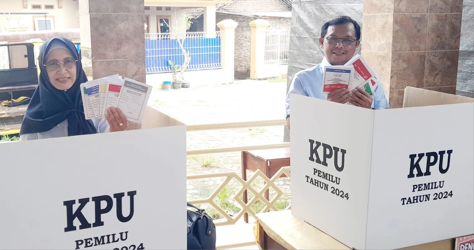 INDRAMAYU, (Cirebonbagus.id).- Politisi Demokrat Herman Khaeron berserta istri dr Ratnawati gunakan hak suaranya di TPS 06 desa Jatibarang Baru Kecamatan Jatibarang Kabupaten Indramayu.