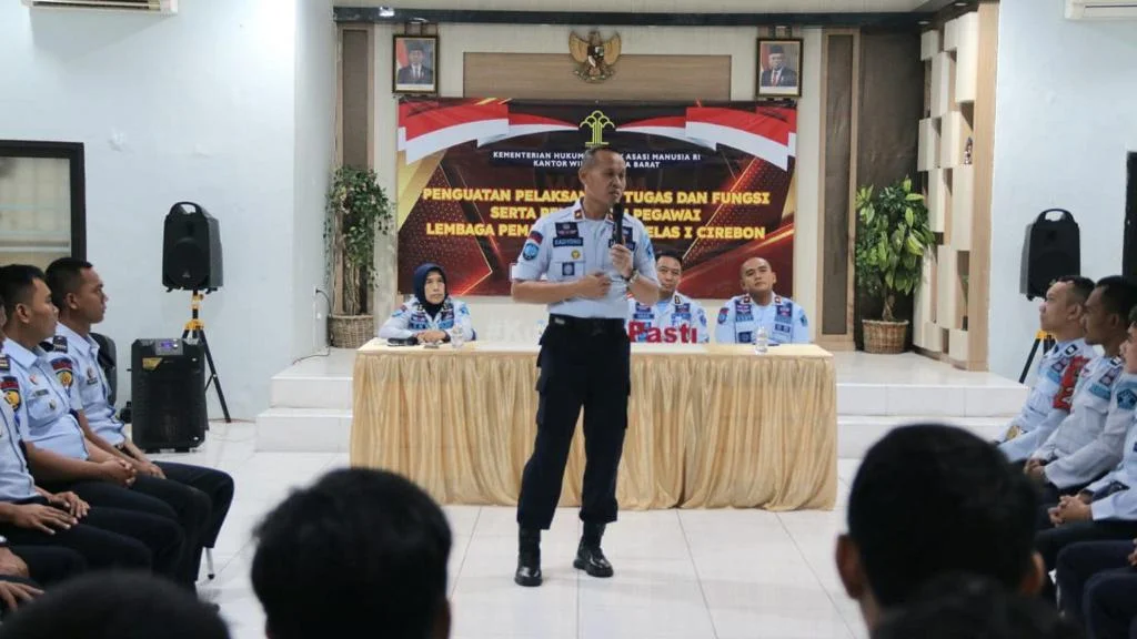 CIREBON, (cirebonbagus.id).- Pegawai Lapas Kelas 1 Cirebon angkatan 2017, 2018, 2019, dan 2021 mendapatkan penguatan dari Kalapas, Kadiyono, beserta Kabag Tata Usaha, Leny Puspasari, Kabid Pembinaan, Iwan Darmawan., dan Kepala KPLP, Dody Naksabani.