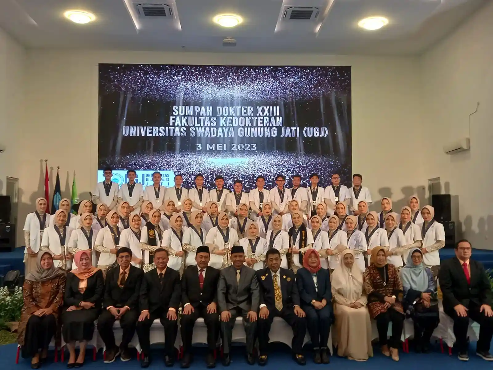 CIREBON, (cirebonbagus.id).- Universitas Swadaya Gunung Jati (UGJ) Cirebon hari ini, Rabu (3/5/2023) melaksanakan sumpah dokter bagi 48 mahasiswa Fakultas Kedokteran UGJ. Pengambilan sumpah dokter ini dilaksanakan di Auditorium Kampus 1 UGJ, Jalan Pemuda Kota Cirebon.