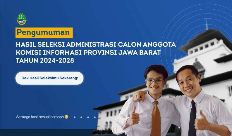 Penetapan tersebut berdasarkan Surat Keputusan Nomor: 4410/KOM.95.04.08/IKP tentang Hasil Seleksi Administrasi Calon Anggota Komisi Informasi Provinsi Jawa Barat Masa Jabatan 2024-2028, yang dikeluarkan tanggal 24 Juli 2024.